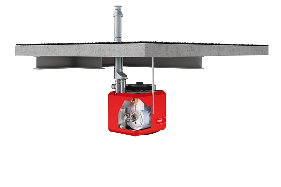 The units are delivered ready to install with a flue gas accessories and a suspension set. They are suitable for ceiling or wall mounting.