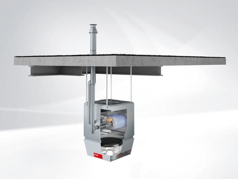 Recirkulációs berendezés max. 6 m magas csarnokok fűtéséhez gázfűtéses hőcserélővel