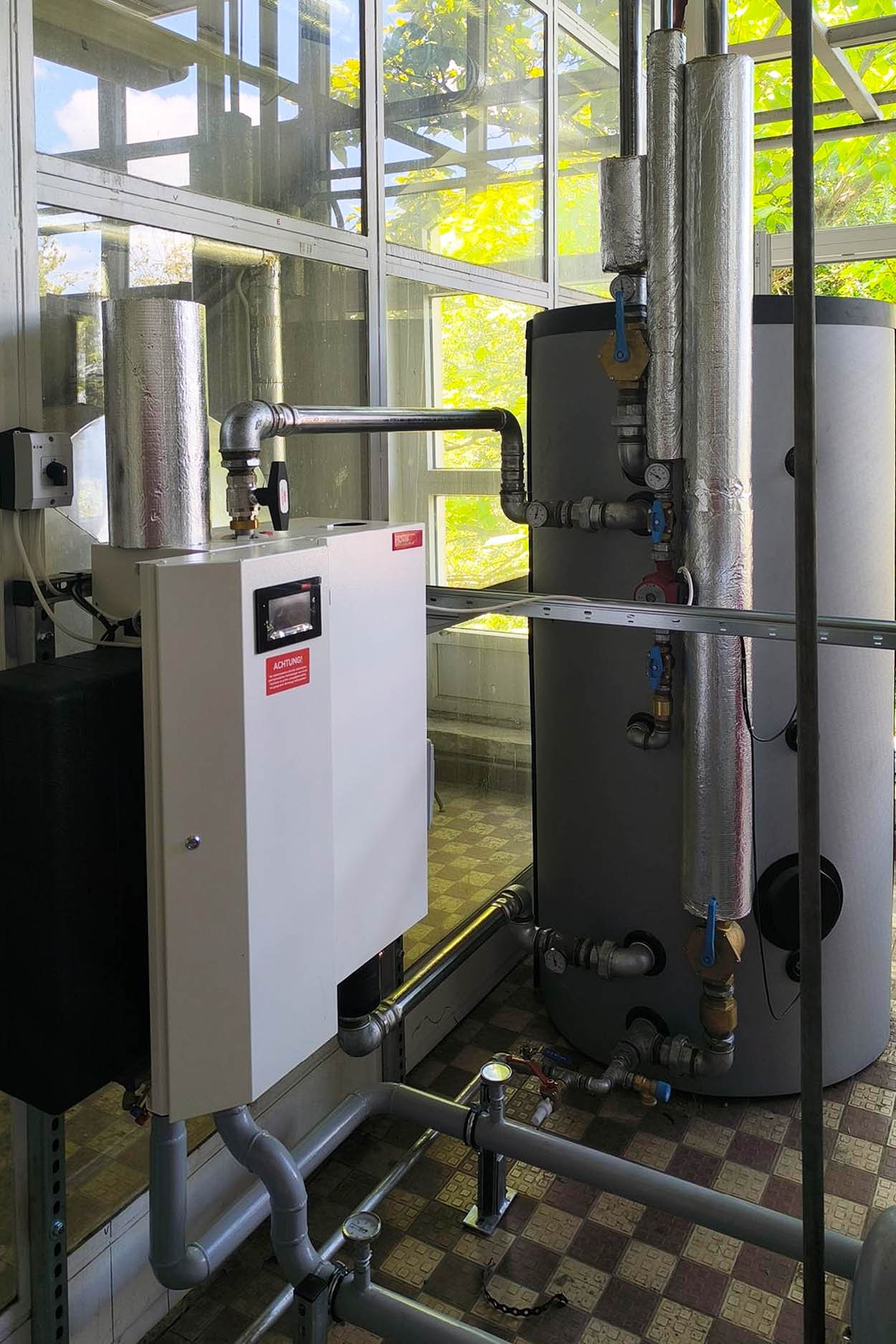 A mátészalkai Északi ASzc Baross László Mezőgazdasági Technikum, Szakképző Iskola és Kollégium főépületének, kollégiumának, tornatermének és konyhájának fűtési és használati-melegvízigényét 5 db Hoval TopGas®120 kondenzációs fali gázkazán elégíti ki.