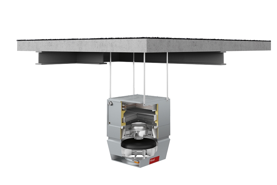 A mennyezet alá szerelt készülék beszívja a helyiség levegőjét, felmelegíti vagy lehűti azt, majd az örvénykamrán (Air-Injectoron) keresztül visszafújja a helyiségbe.
