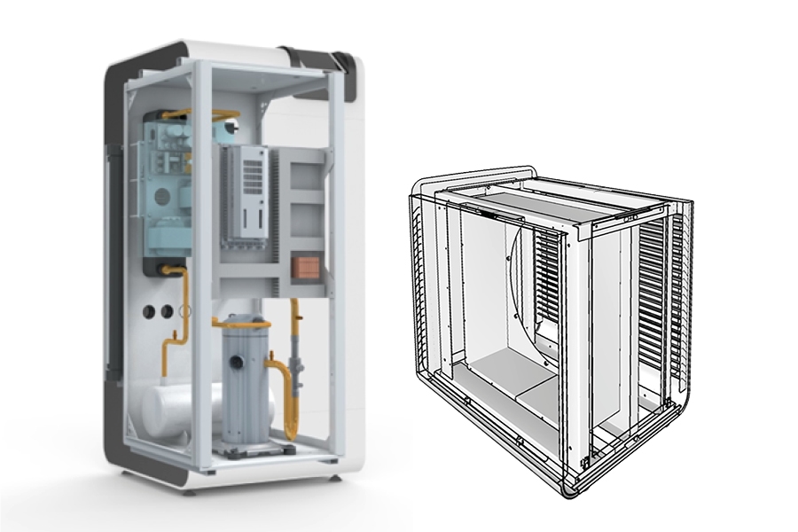 A WPL split hőszivattyú nem igényel földmunkát a kertben, csak egy kis helyet a telepítéshez. A split-kivitelben az elpárologtató a kültérben, a hőszivattyú pedig beltérben található.