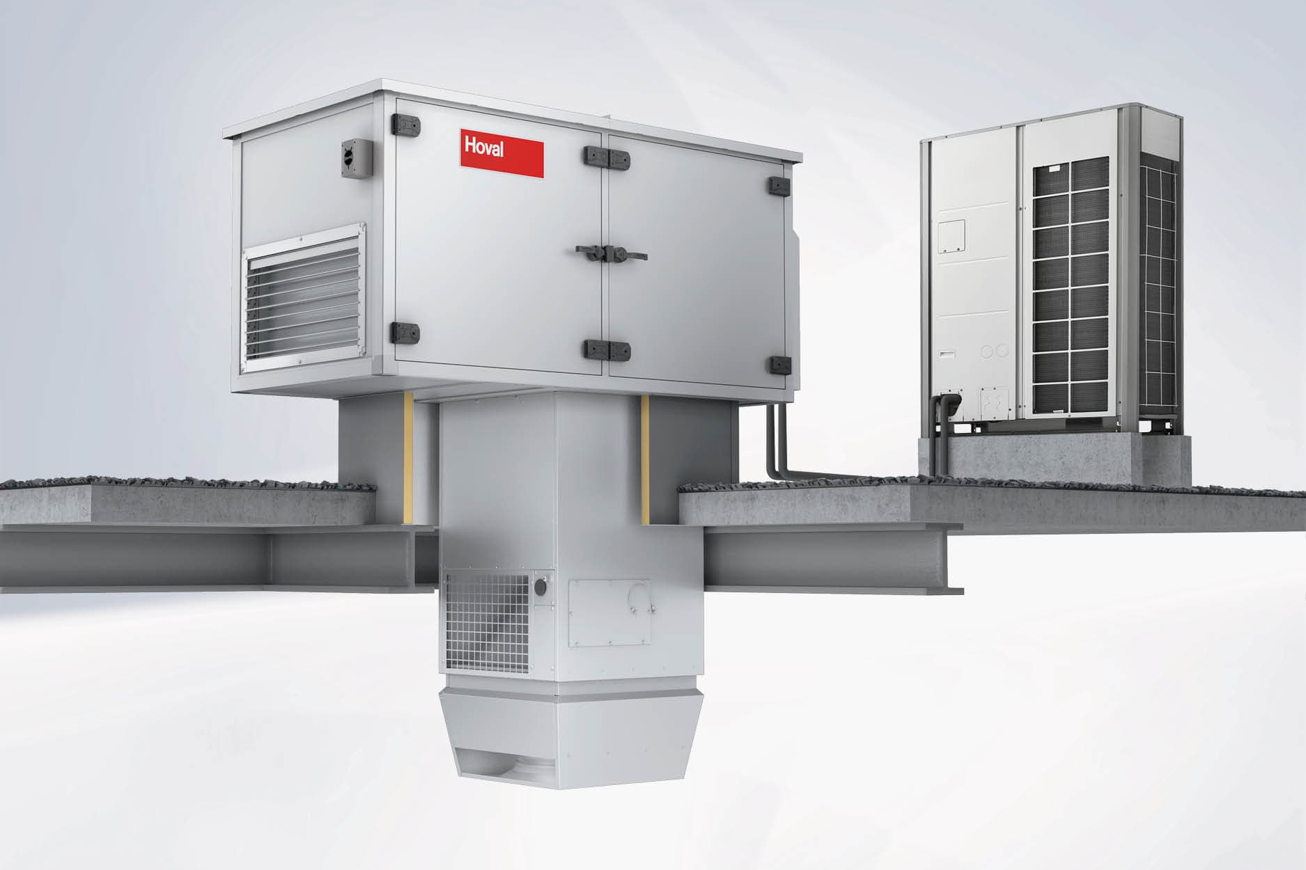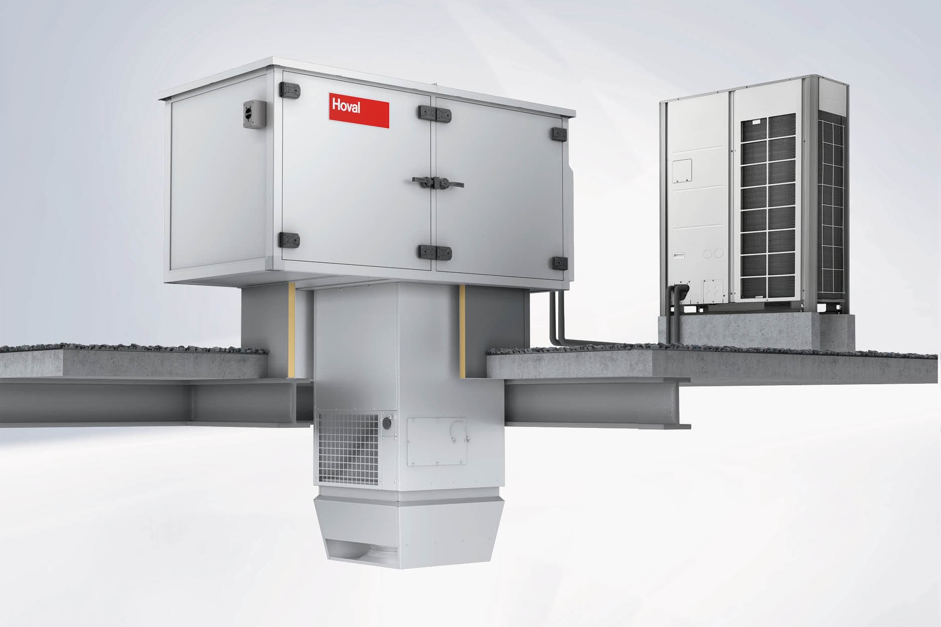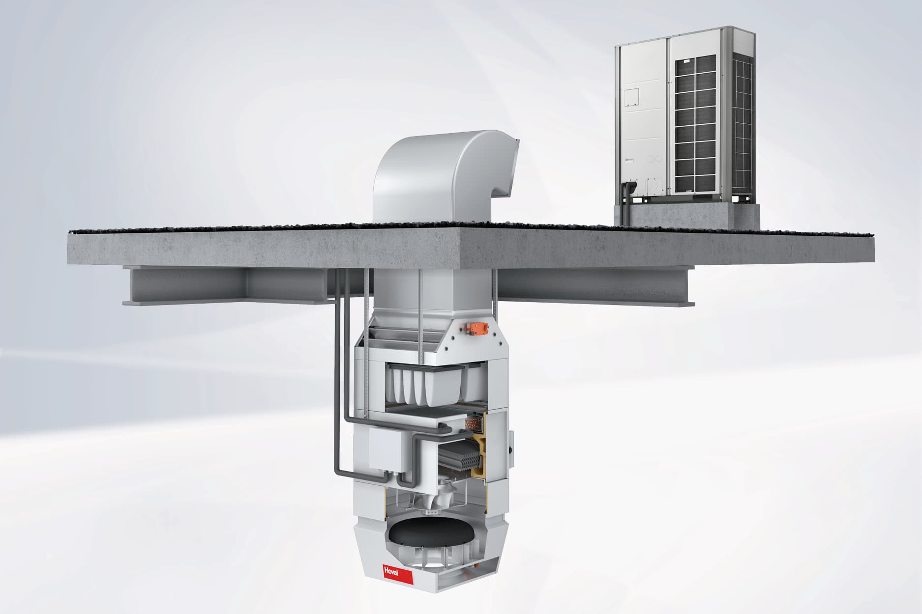 A szellőztető készülék reverzibilis hőszivattyúval, nagy teljesítményű hővisszanyerővel, magas csarnokok fűtéséhez, hűtéséhez és szellőztetéshez alkalmas.