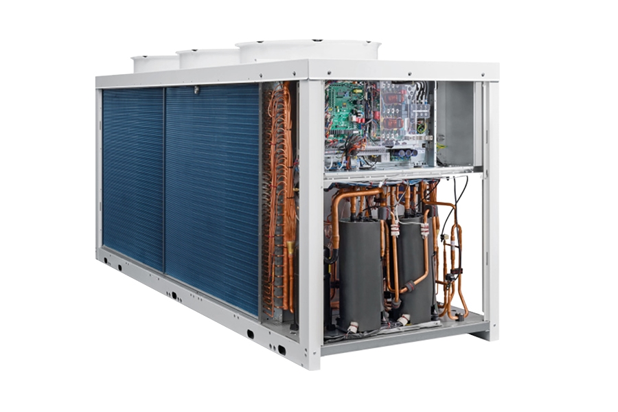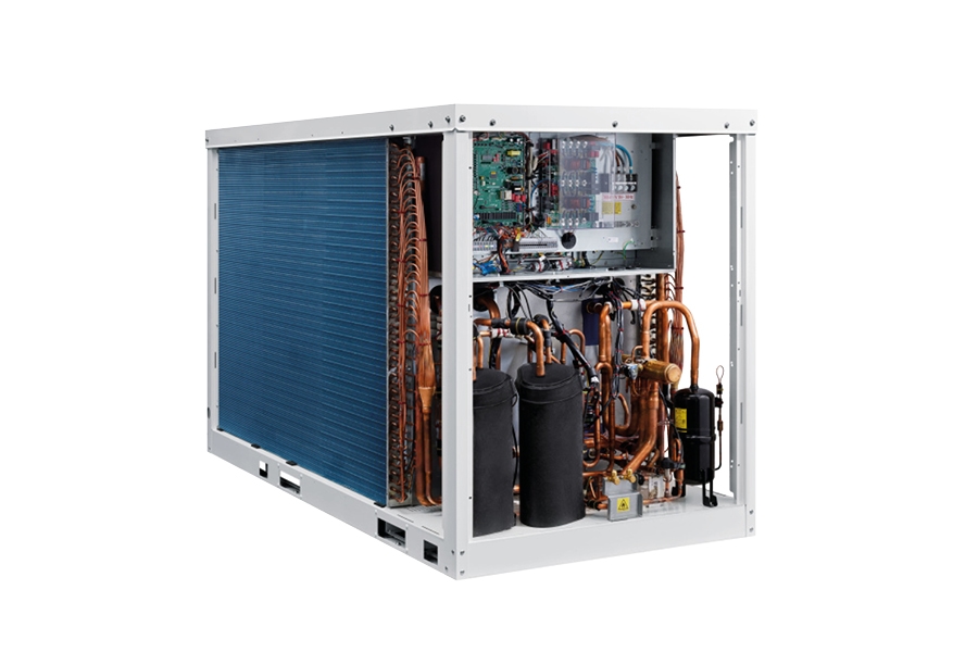 Kültéri felállítású, modulált monoblokk hőszivattyú R32-es hűtőközeggel fűtésére és hűtésére, akár 1,1 MW-ig