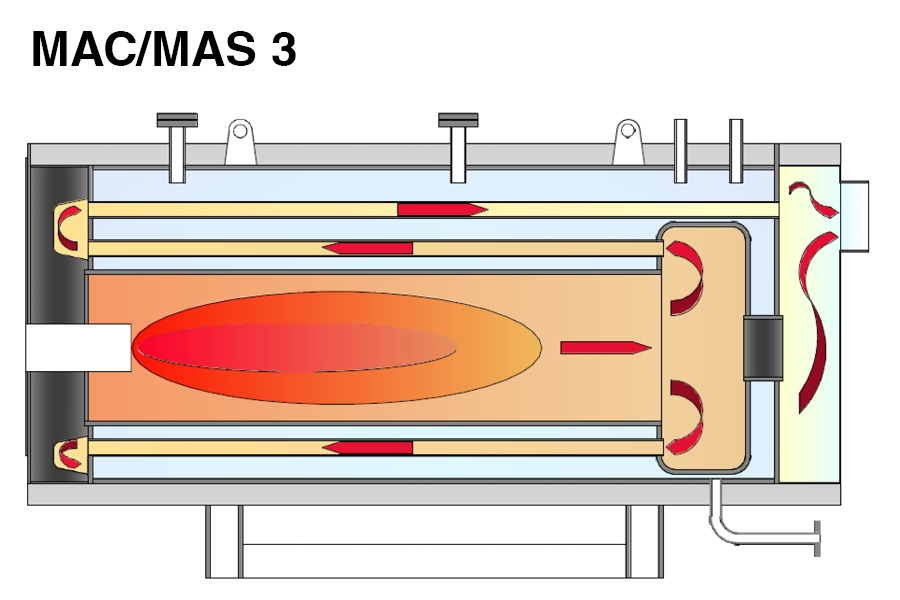 MAS: 3-huzamú, füstcsöves, túlhevített forróvízkazán 192 °C-ig. Teljesítmény: 140 - 2.910 kW, 9,8 bar nyomásig.