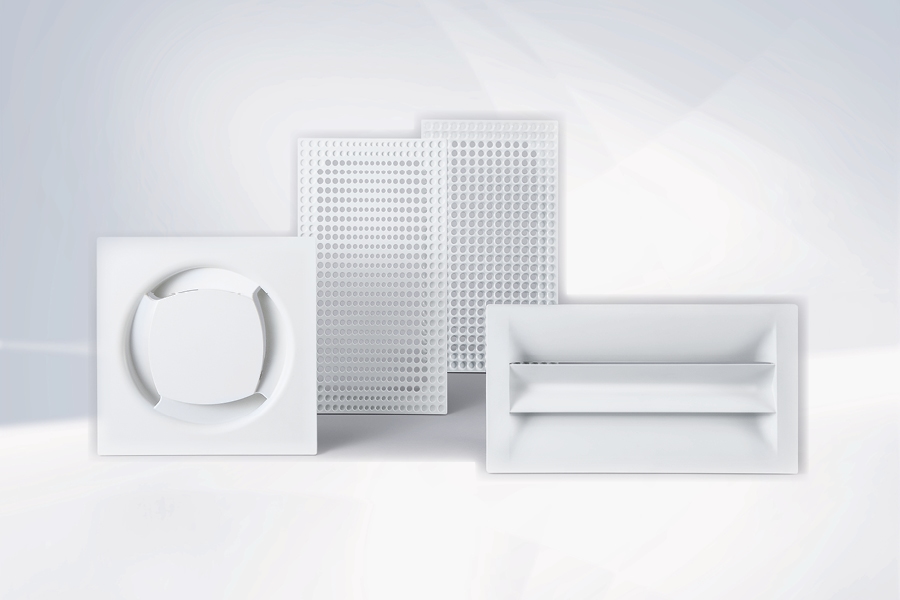 A testre szabott és kompakt alkatrészek, mint például az elosztódobozok, az elosztóvezetékek és a légbefúvók a rendszerkialakítások széles skáláját kínálják. Ha a szellőzőrácsokról van szó, a spektrum a tisztán funkcionális modellektől a dizájnos rácsokig terjed.