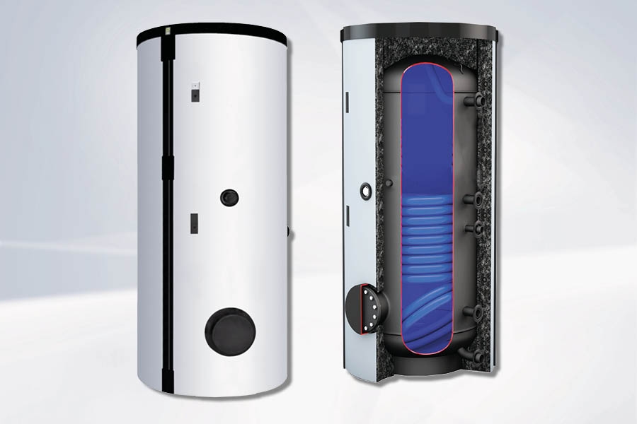 Az S (800-1000), ... H normál, ill. nagyteljesítményű hőcserélős acéllemez HMV-tároló, korrózióálló zománcozással (DIN 4753 szabvány szerinti zománcozott belső tartály). Nagy felületű csőregiszter bivalens vagy trivalens üzemhez fűtési, napkollektoros, hőszivattyús vagy távfűtési csatlakozással. Hőcserélő felület: 2 - 2,4 m²