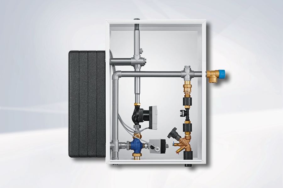 Készre szerelt állomás lemezes hőcserélővel az ivóvíz előállításához átfolyós rendszerben